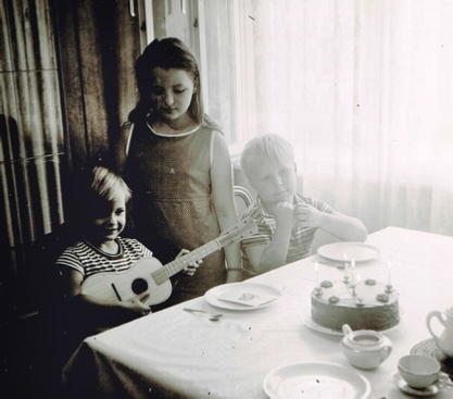 Anscheinend hatte man dann Mitleid mit meinen, auf der Luftgitarre wund gespielten Fingern und ich bekam eine erste Mini-Gitarre. Blockflöte lernen und zu Weihnachten gemeinsam mit Mutter und Schwester zu spielen gehörte natürlich auch dazu.